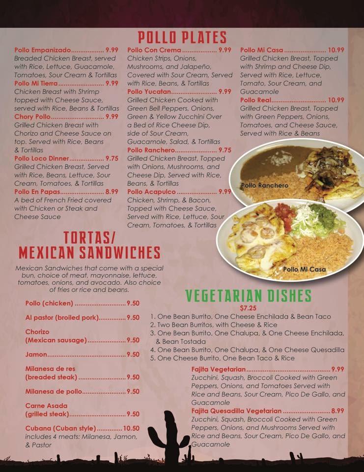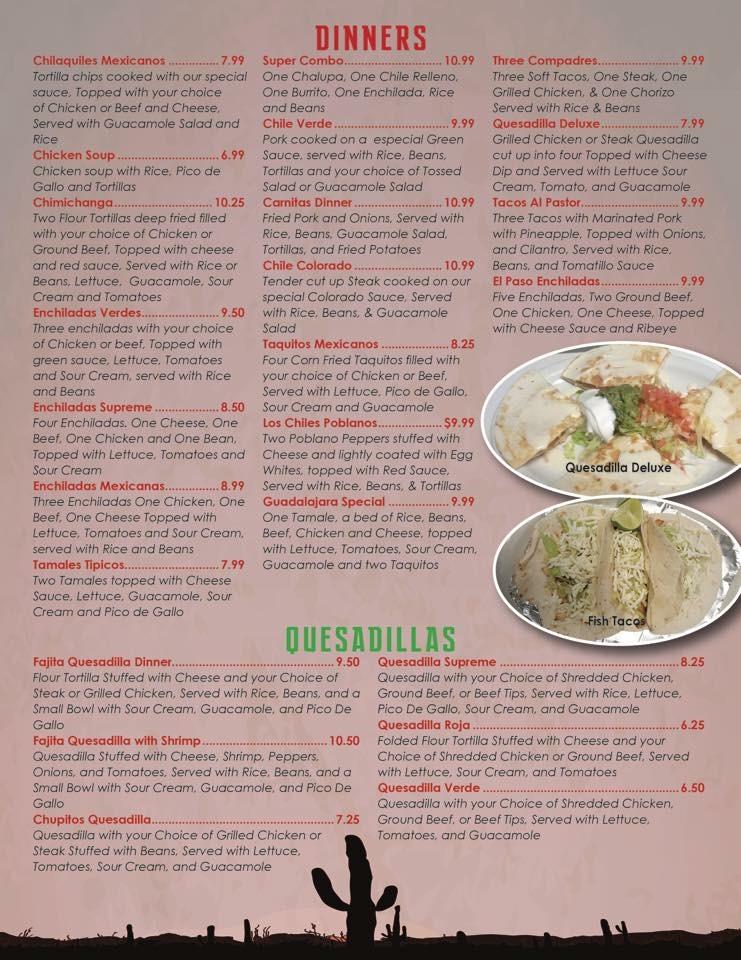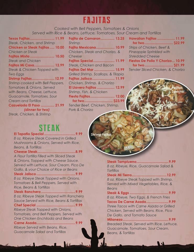 The menu at El Paso is extensive, featuring 119 dishes that cater to various tastes. Appetizers like nachos supreme and chilaquiles set the stage for a flavorful meal. Seafood lovers can dive into shrimp chimichangas or camarones a la diabla. For meat lovers, the pollo plates are a highlight with options like pollo empanizado. Vegetarian options include tasty fajita quesadillas, ensuring everyone has choices. Don’t overlook the dessert menu either, boasting treats like fried ice cream and Mexican flan. Each dish showcases vibrant flavors and quality ingredients, creating an authentic dining experience.